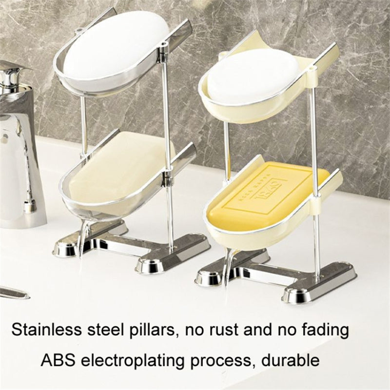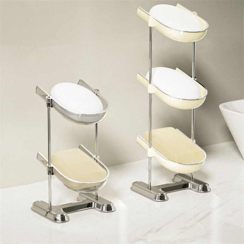 Three Layers Bathroom Stainless Steel Column Soap Holder Tray Draining Soap Dish Electroplating Storage Shelf