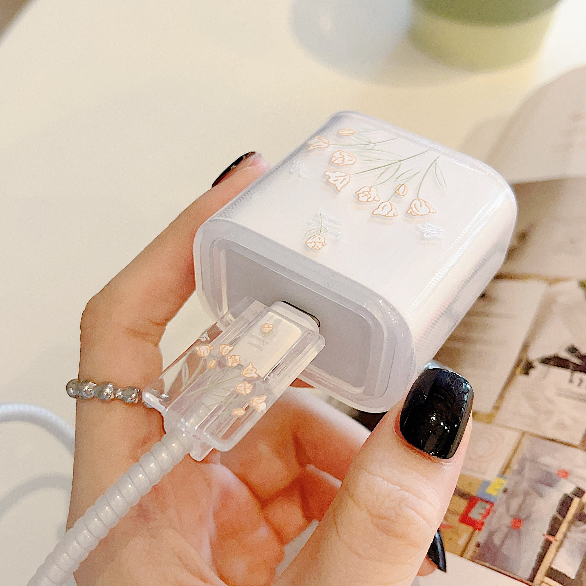 Transparent TPU Case for iPhone 18W / 20W Charger Adapter Protector Set with Charging Cable Connector Cover