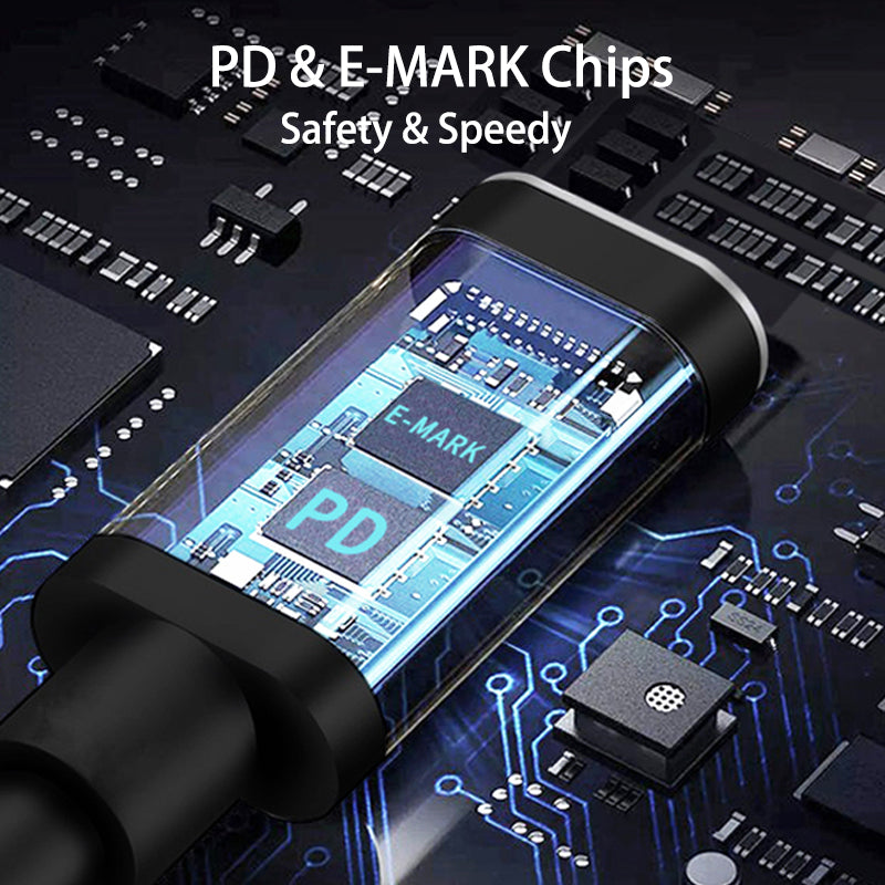 - Build-in PD & E-Mark smart chip, which makes safe and speedy charging up to 100W