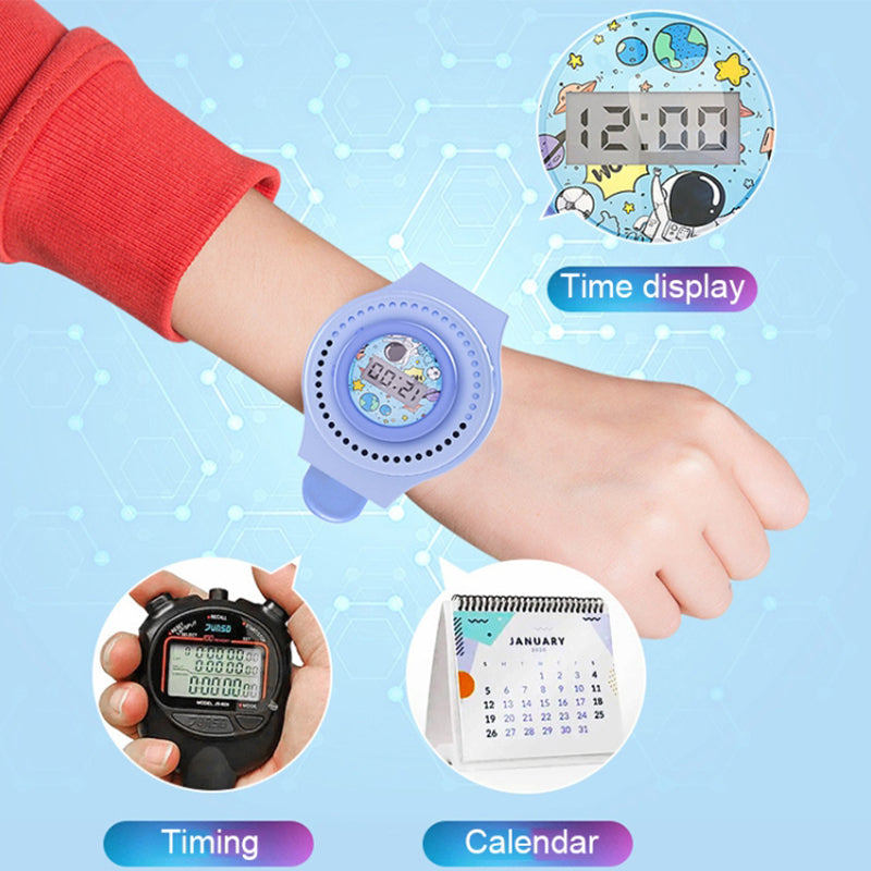 USB Rechargeable Portable Mini Fan Children Handheld Cooling Fan (Digital Time Version)