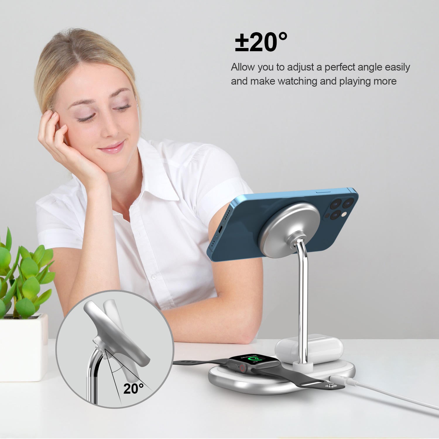 W32 Desktop 3-in-1 Magnetic Wireless Charger for Phone, Watch, Headset 15W Fast Charging Station Stand