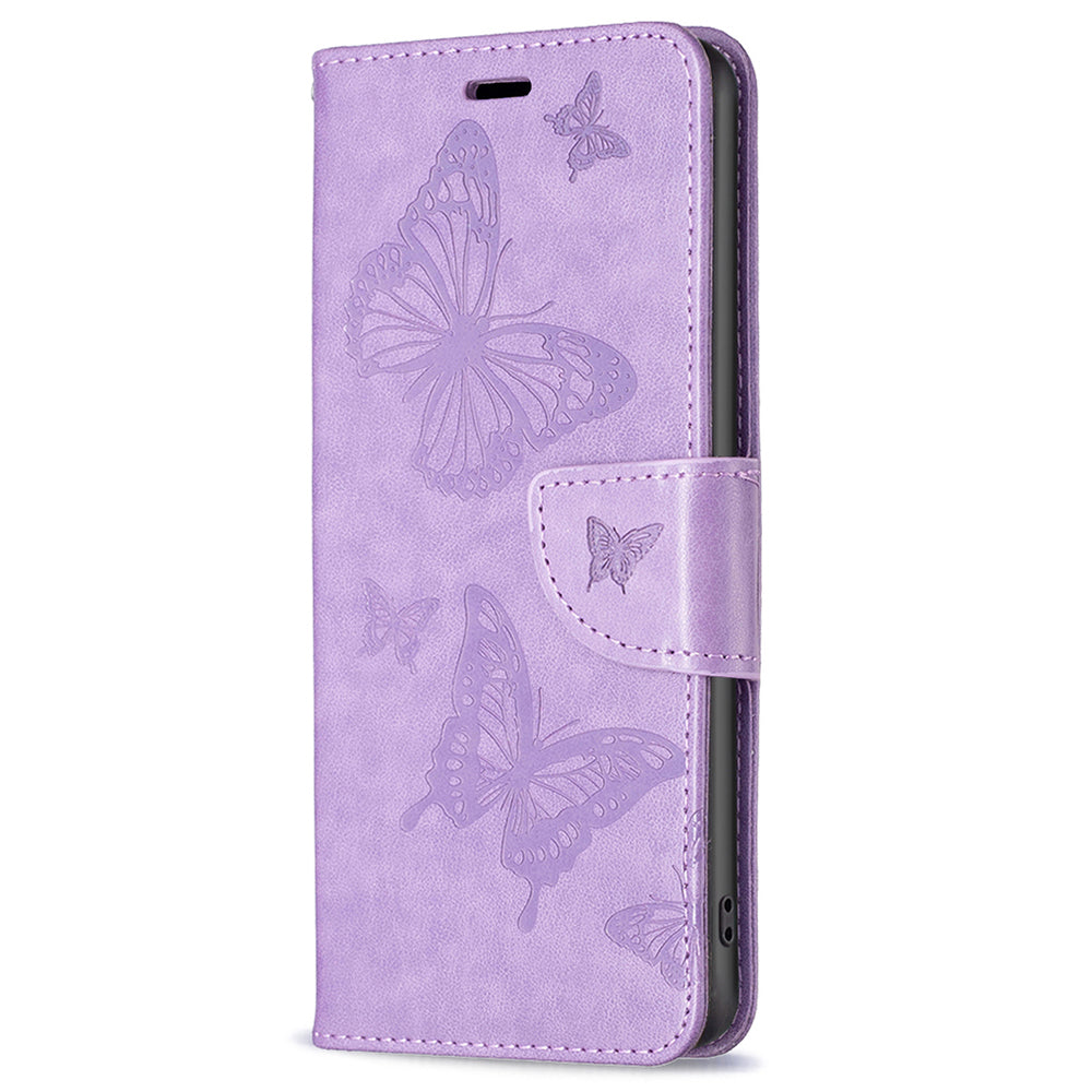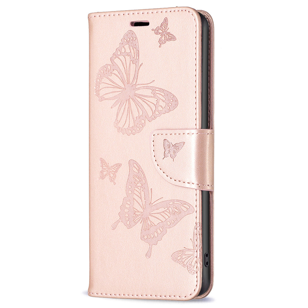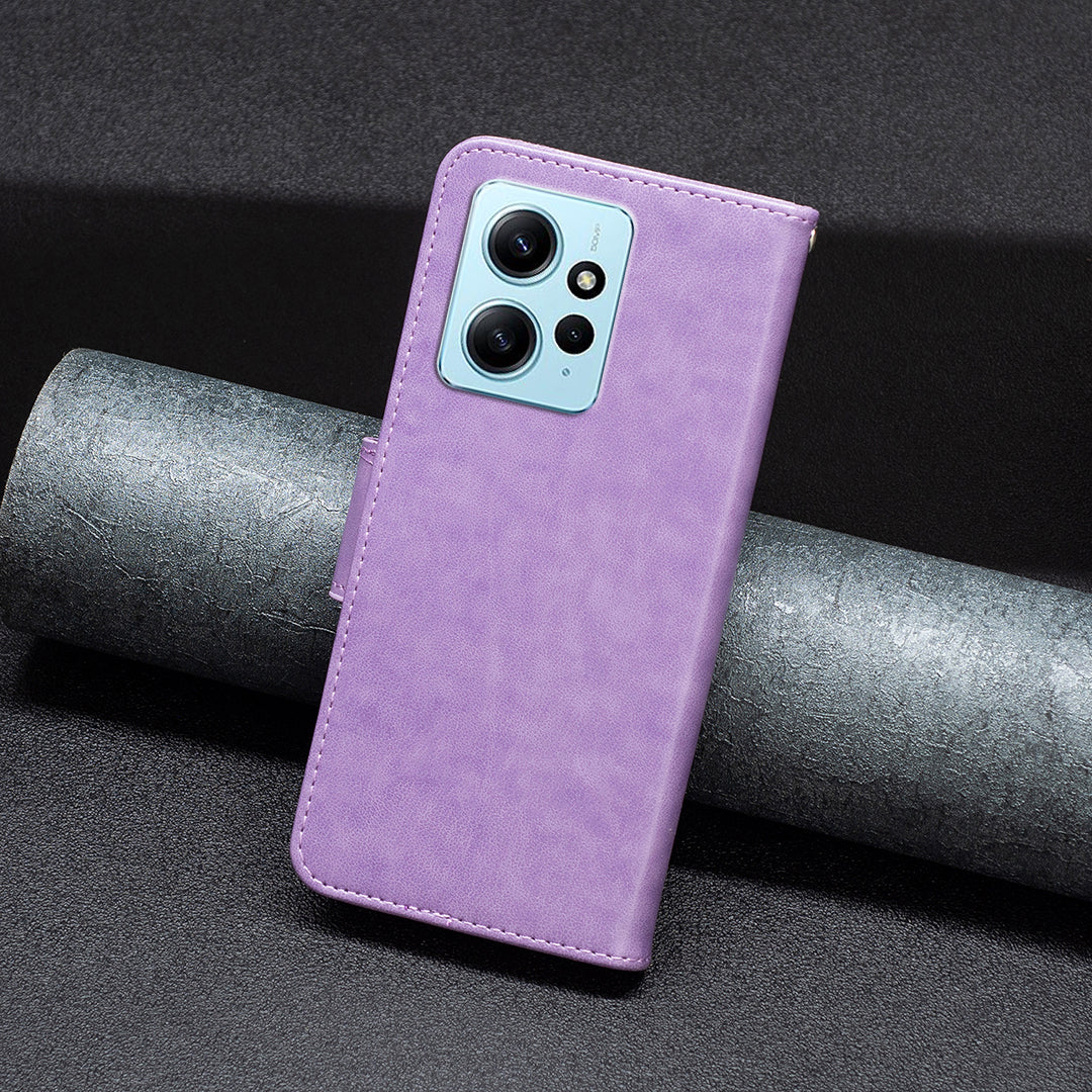 Wallet Stand Case for Xiaomi Redmi Note 12 4G Butterfly Imprinted Leather Phone Cover with Strap