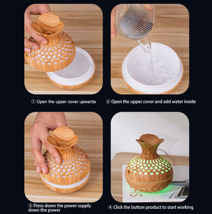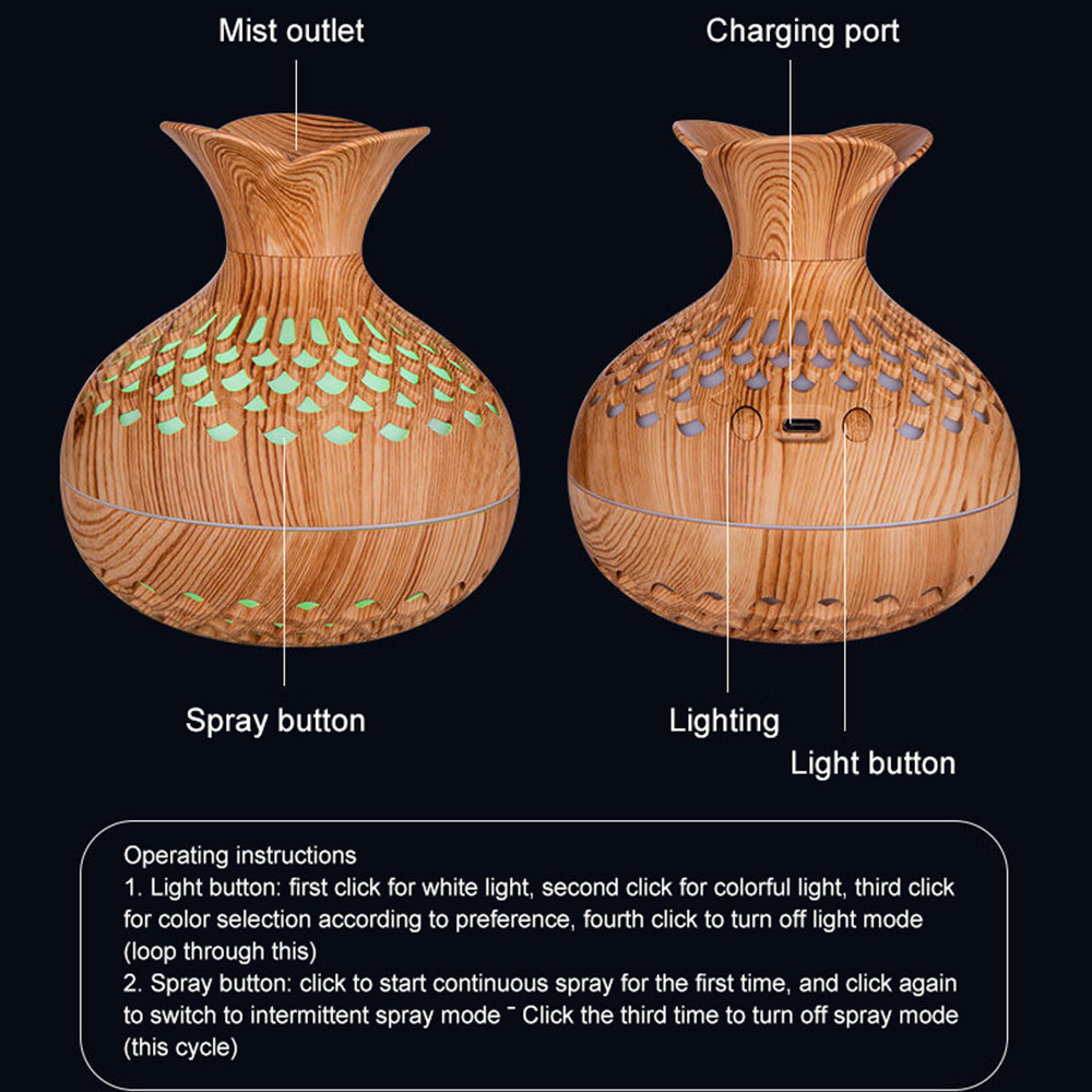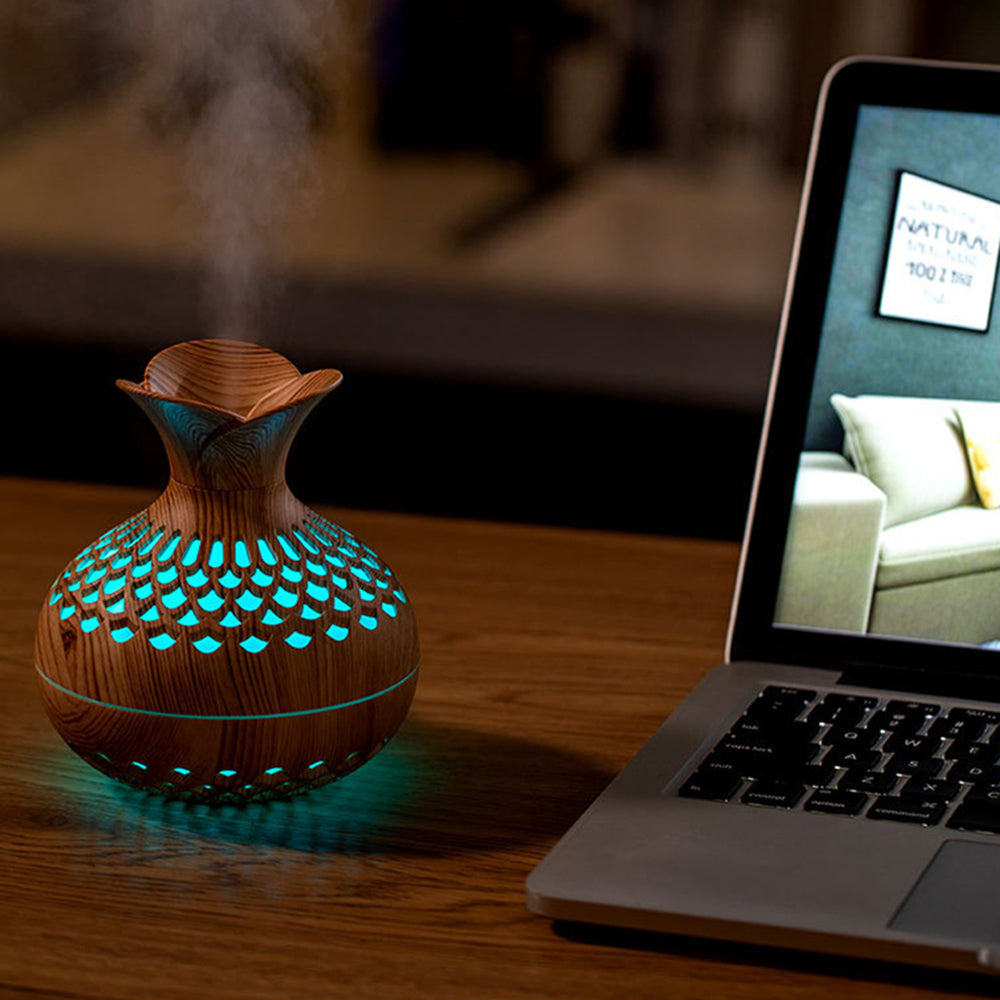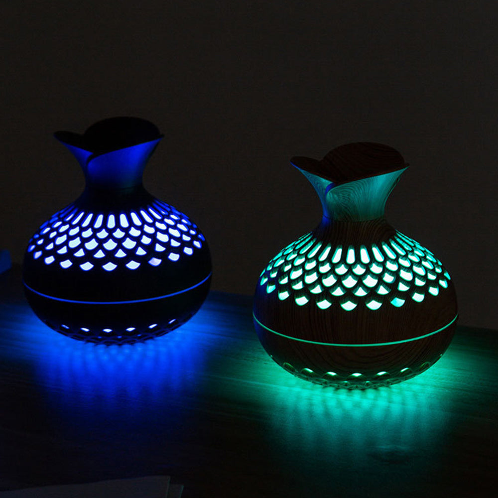 Wood-Grain Humidifier Colorful Cool Essential Oil Diffuser 300ml Ultrasonic Aroma Air Vaporizer (CE Certificated)