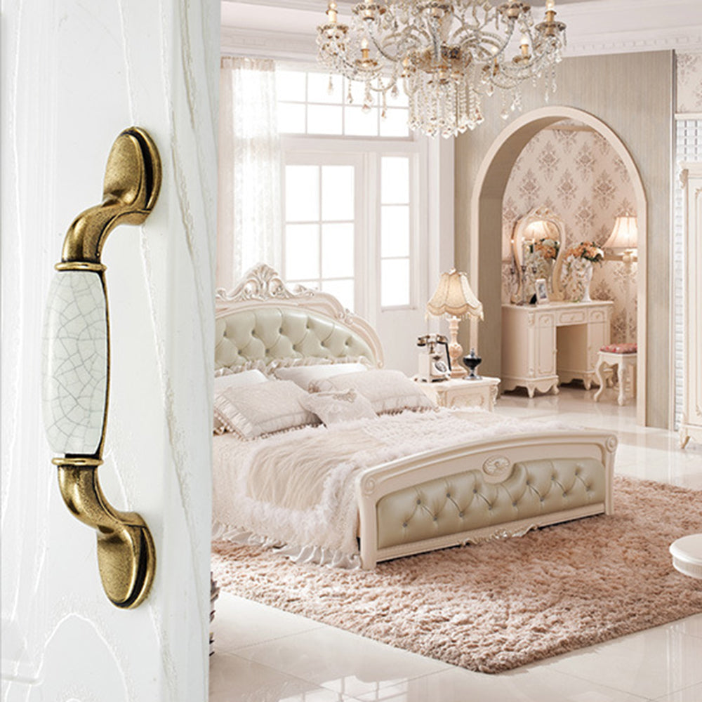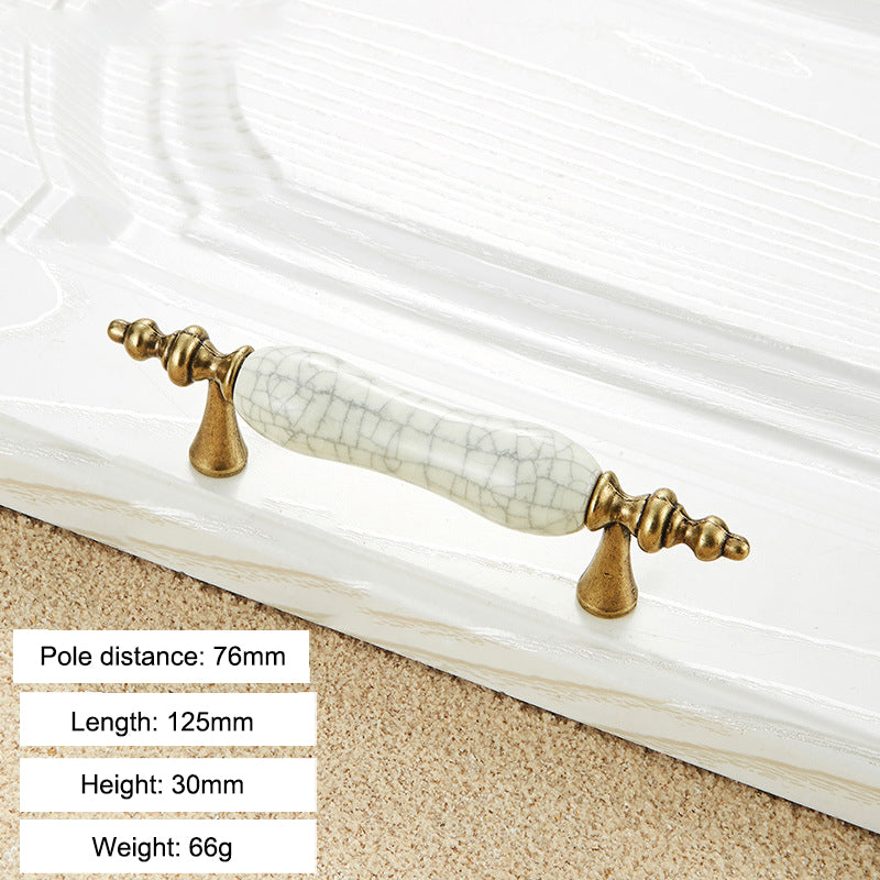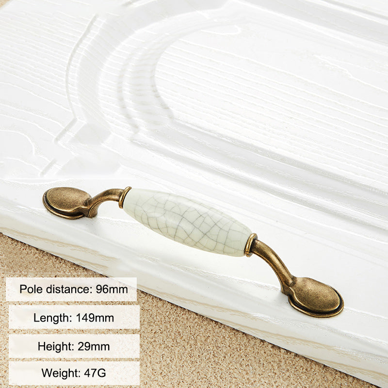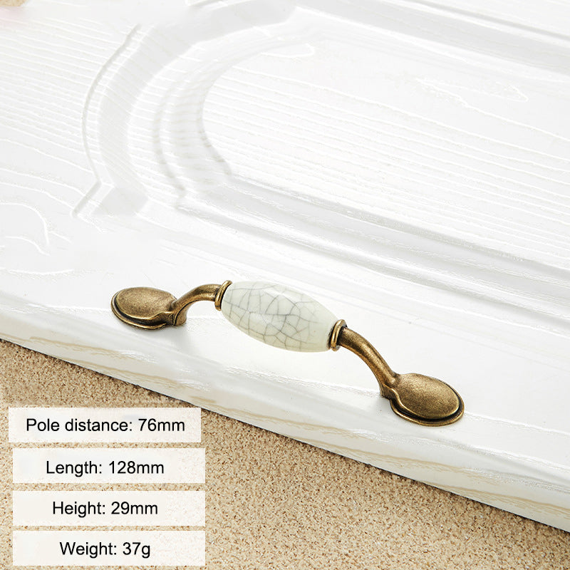 Zinc Alloy Drawer Knobs Wardrobe Door Puller White Ceramic Cracked Cabinet Handle with 22mm Screw