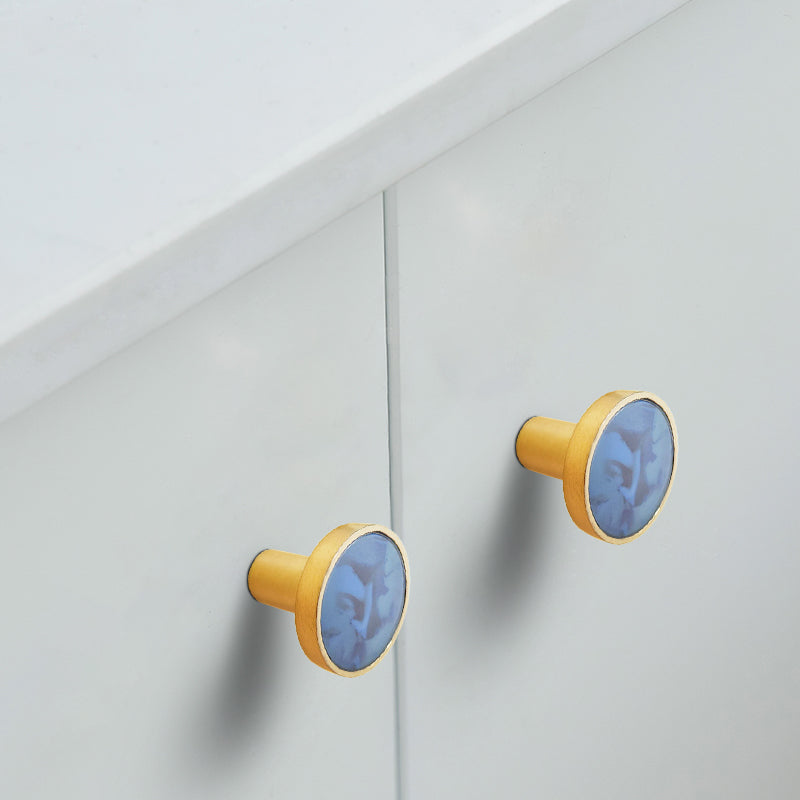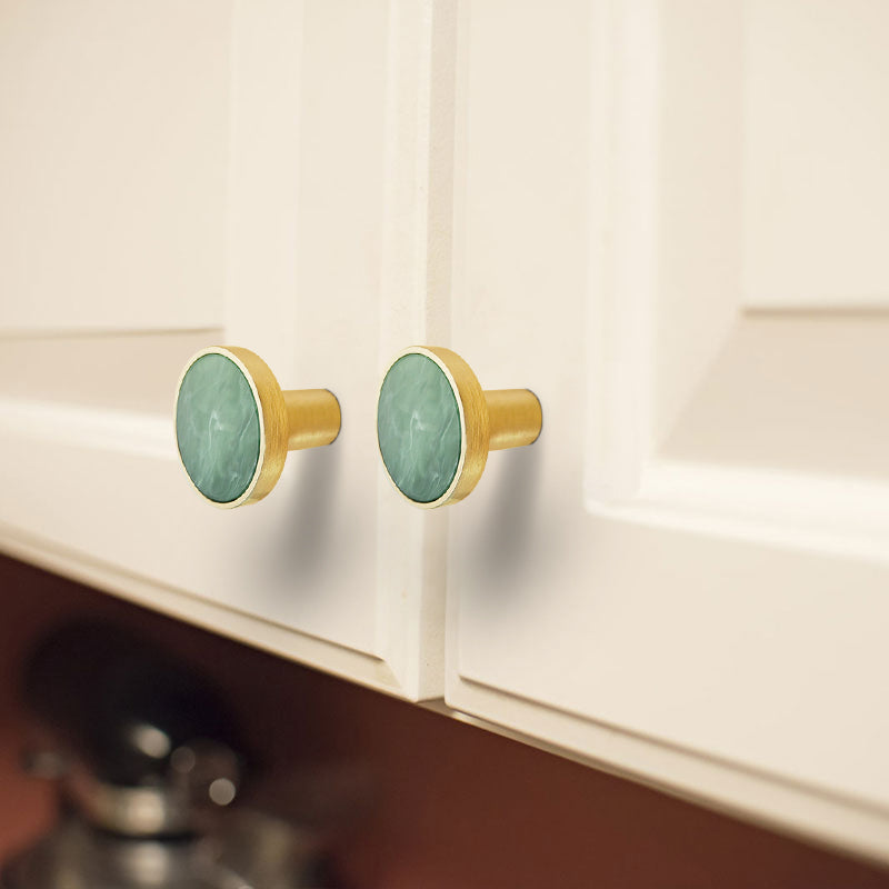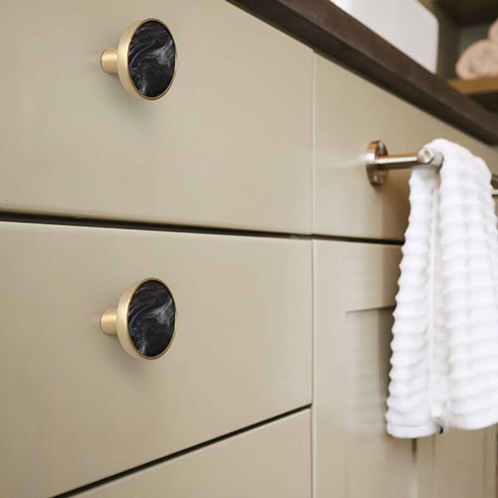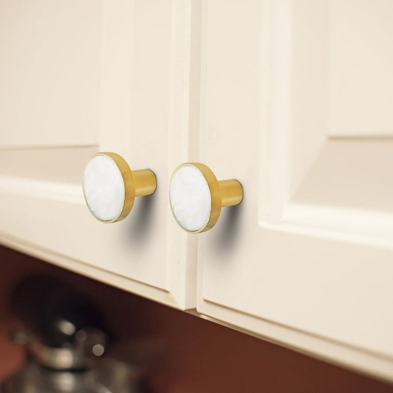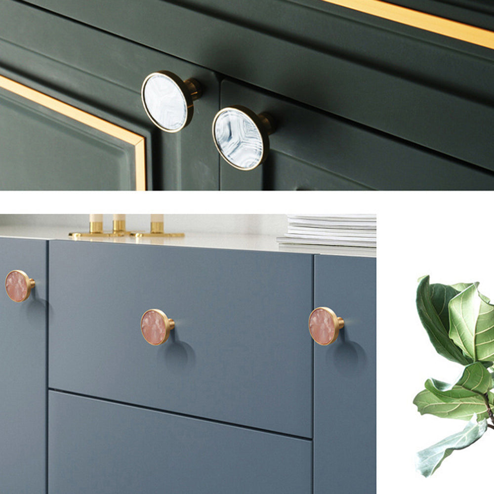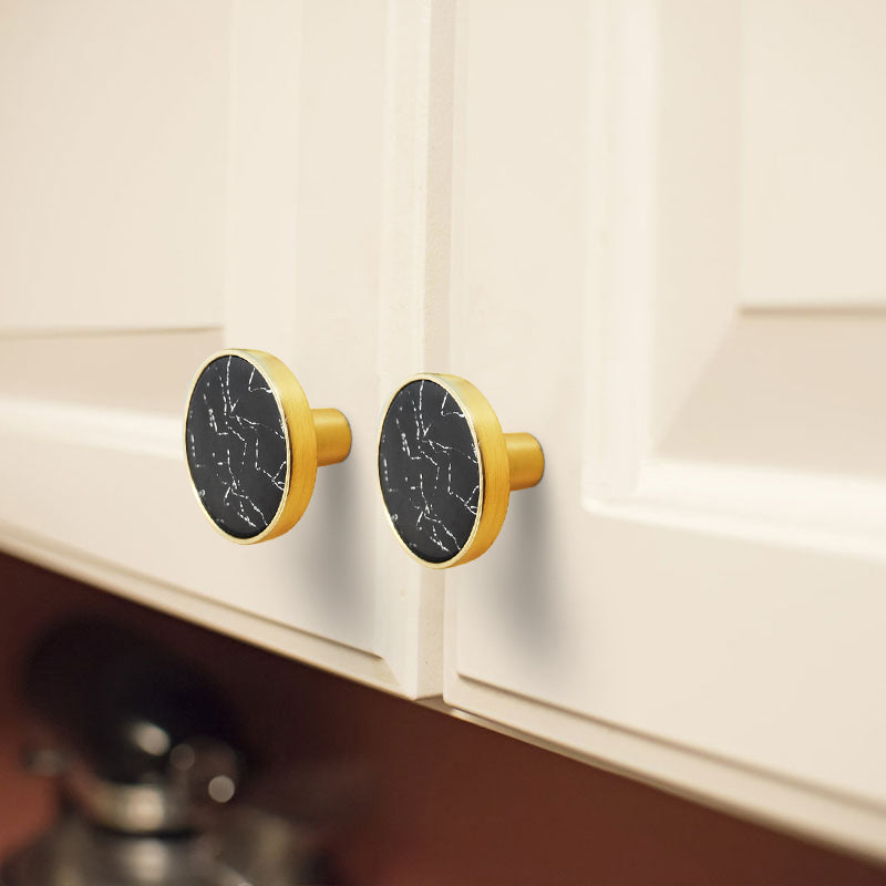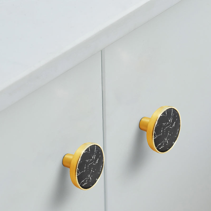 Zinc Alloy Shell Marble Texture Furniture Round Handle Drawer Wardrobe Cabinet Door Knob, 22mm Screw